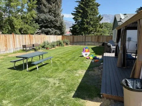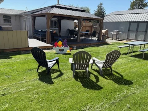 Tucked away in a fenced, private setting, the patio gathering space at Wagon Wheel Cottages & RV Park is designed for relaxed, worry-free outdoor time. The covered patio offers shade and comfort in any weather, while the fire pit creates a natural spot to gather in the evenings. With a grill and smoker available, it's perfect for cooking out, sharing meals, and lingering over good conversation. Whether you're hosting a casual cookout or unwinding after a day in the mountains, this private space invites you to settle in and enjoy the moment.